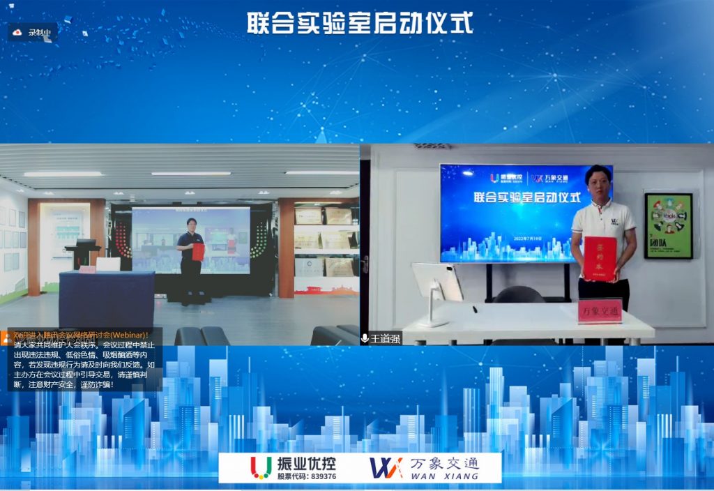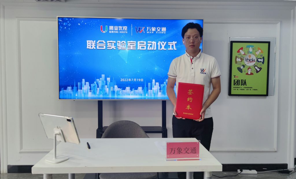 2022年7月19日,廣東振業(yè)優(yōu)控科技股份有限公司(簡稱“振業(yè)優(yōu)控”)與黑龍江萬象交通科技有限公司(簡稱“萬象交通”)舉行“振業(yè)優(yōu)控-萬象交通聯(lián)合實(shí)驗(yàn)室”簽約儀式。振業(yè)優(yōu)控CEO陳寧寧博士、萬象交通技術(shù)總監(jiān)王道強(qiáng)參加此次儀式。