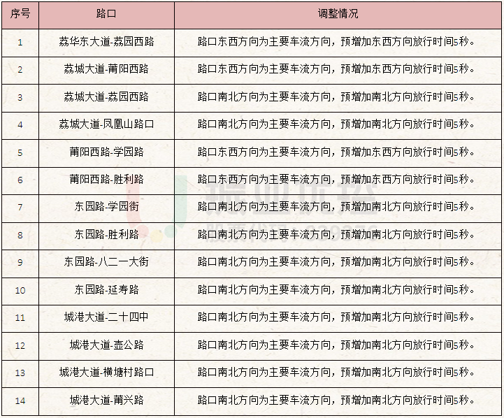 節(jié)前,考慮車流呈現(xiàn)遞增情況,信號優(yōu)化團(tuán)隊(duì)對城區(qū)主干道荔城大道、東園路等14個路口,進(jìn)行配時預(yù)調(diào)整,加大主要車流方向的放行時長,做好路口車流疏散工作,保障主要路段通行順暢。