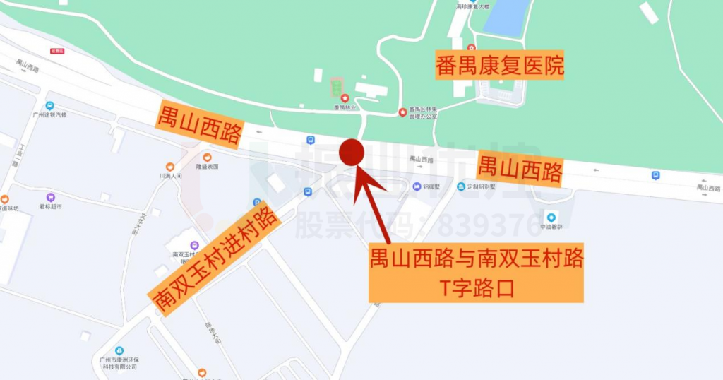 禺山西路與南雙玉村T字路口位于廣州市番禺區(qū)南雙玉村進村路與禺山西路交匯處。路口東西走向的禺山西路是廣州市番禺區(qū)的一條主干道,雙向八車道,連接禺山大道與G105國道;南側(cè)為南雙玉村進村路,雙向兩車道,是進入南雙玉村的主要道路。