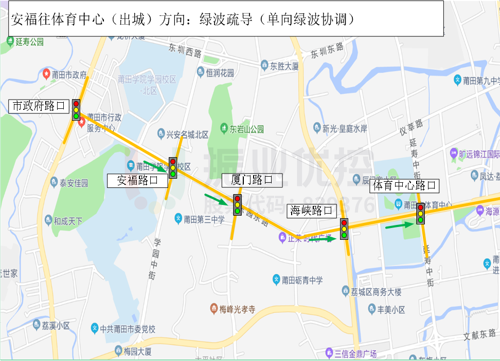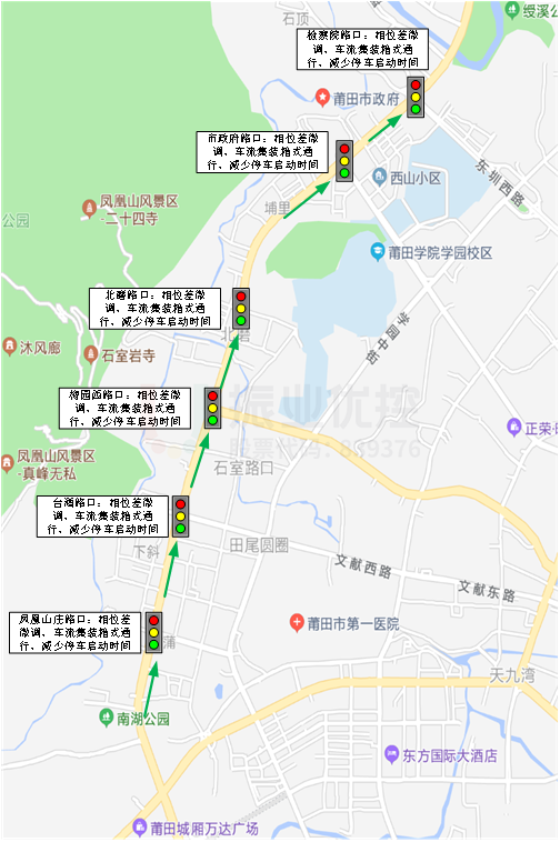 (3)荔城大道路段出城方向(臺酒往檢察院)實施綠波協(xié)調(diào),優(yōu)先出城方向車輛。