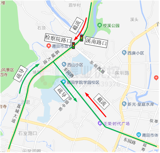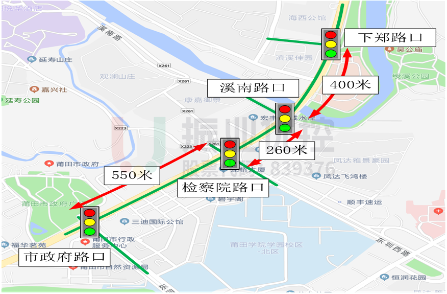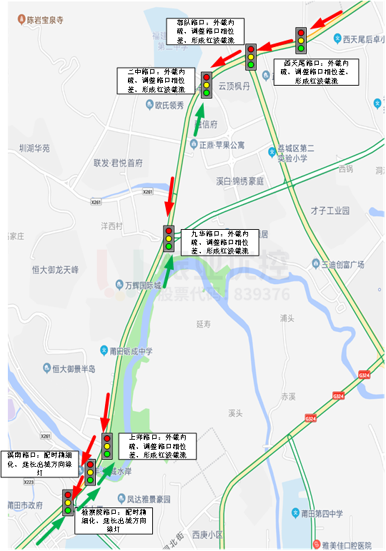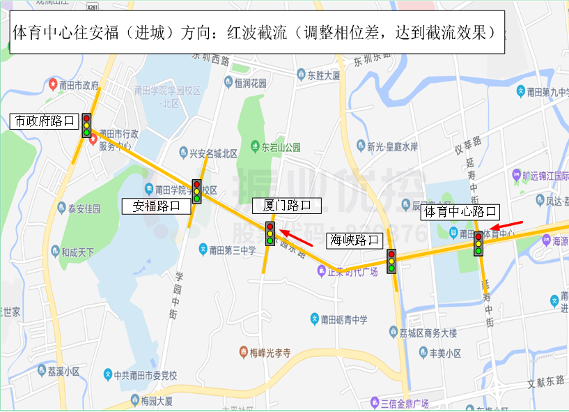 (2)荔城大道路段進(jìn)城方向(西天尾往檢察院)實施紅波截流, 減少下鄭路口往檢察院方向的車流量。