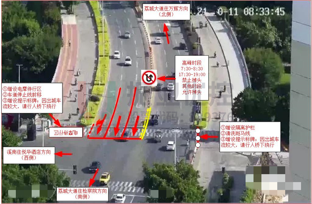 溪南路口北進(jìn)口(下鄭往檢察院方向)實行分時段掉頭。早、晚高峰時段實行禁止掉頭(7:30-8:30和17:30-19:00),進(jìn)城方向的掉頭車輛直行前往市政府路口掉頭繞行;其他時段允許掉頭。