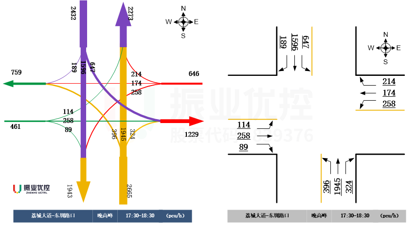 以檢察院路口為例,從該路口高峰小時流量圖及目前的配時方案可知,晚高峰時段南北為主流向,目前該路口屬于超飽和路口。