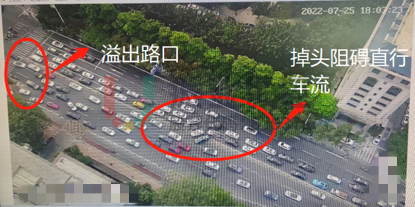 路段進(jìn)城方向因掉頭車輛需在溪南路口處掉頭,造成車道被占用,影響進(jìn)城方向的通行效率。