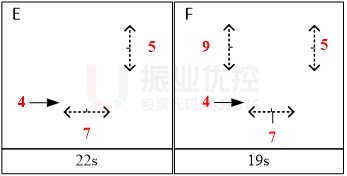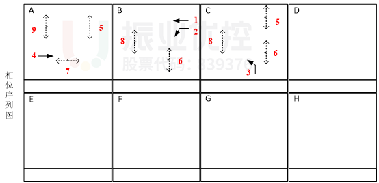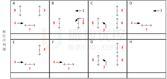 (3)E-F相位:有效解決西直行排隊(duì)長(zhǎng)相互阻擋、車(chē)流離散的問(wèn)題。如下圖所示: