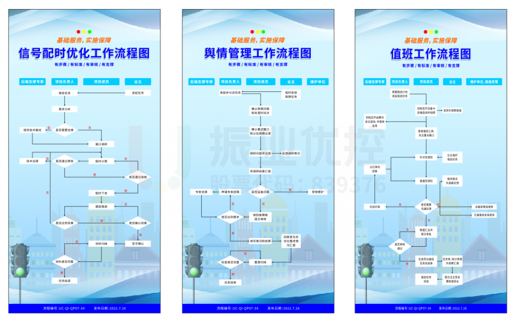 通過編制交通信號控制關(guān)鍵工作流程,嚴(yán)格杜絕信號燈方案調(diào)優(yōu)失誤。通過執(zhí)行《信號配時優(yōu)化工作流程》、《值班工作流程》、《交通信號巡查工作流程》、《路口基礎(chǔ)信息臺帳新增流程》、《輿情管理工作流程》、《信號機方案下發(fā)操作指南》等工作流程,嚴(yán)格規(guī)范各項交通信號配時優(yōu)化工作。