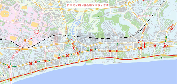 燈會(huì)期間以勝利三路為中心,分別對(duì)云集路西向東車流及港窯路東向西車流進(jìn)行適當(dāng)截流控制,每天17點(diǎn)30分對(duì)沿江大道港窯路口至沿江大道云集路口依次下發(fā)臨時(shí)截流管控方案,統(tǒng)一路段周期為130秒,讓車流均衡地分布于路段,減少會(huì)場(chǎng)周邊交通壓力;20點(diǎn)后,根據(jù)路段車流通行情況實(shí)時(shí)恢復(fù)主控綠波方案,保障車流順暢通過(guò)。