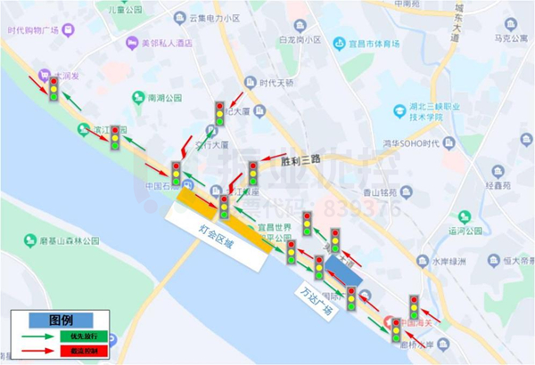 此外,對(duì)夷陵大道的勝利三路、勝利一路、江海路、港窯路等四處路口實(shí)施精細(xì)化單點(diǎn)控制,確保外圍車流有序進(jìn)入路段、短距離路口車流不溢出。