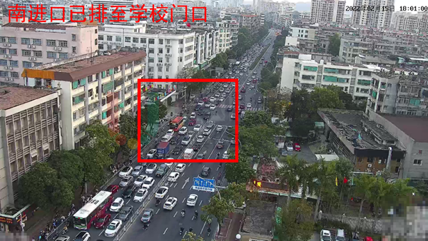 汕樟-金湖路口位于金砂小學(xué)附近,晚高峰放學(xué)時段,南進(jìn)口車流量激增,排隊車流回溢至學(xué)校門口,阻擋學(xué)生“放學(xué)路”,出現(xiàn)安全隱患。