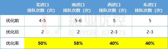 路口各進(jìn)口排隊次數(shù)優(yōu)化前后對比