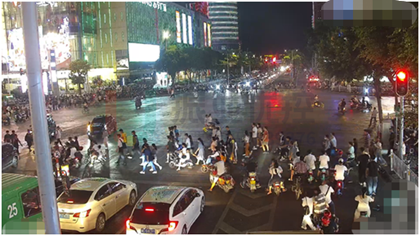長平-金環(huán)路口位于汕頭市中心商業(yè)核心區(qū),毗鄰萬象城、蘇寧廣場、群光匯、366購物城等商業(yè)綜合體,周末及節(jié)假日晚間時段,路口車流量激增,機(jī)非沖突、車輛回溢、車輛排隊等待現(xiàn)象嚴(yán)重,交通秩序較為混亂。
