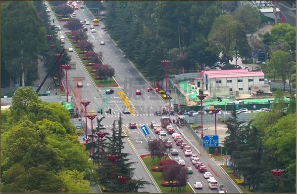 眉州大道與文忠街交叉口位于眉山市東坡區(qū),附近分布政府單位、火車站、中小學(xué)、商圈等交通吸引點,晚高峰車流量較大。