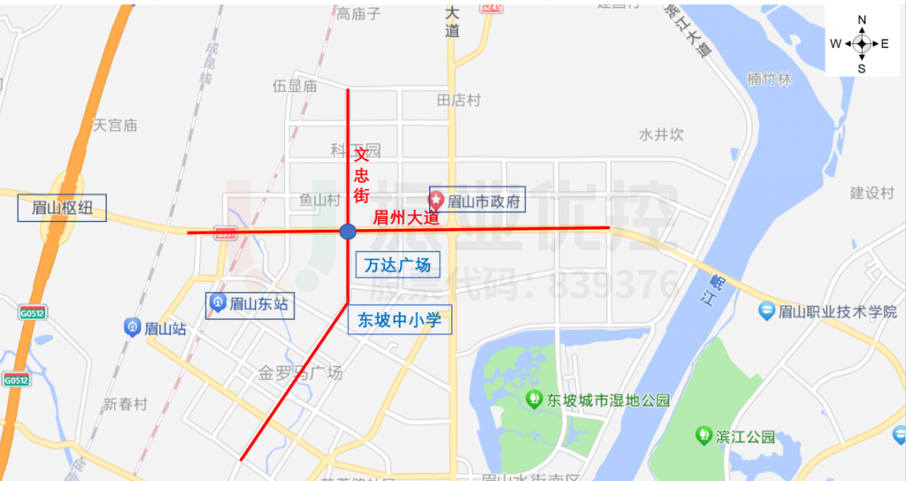 其中,眉州大道東西走向,是主城區(qū)連接岷東新區(qū)的唯一通道,也是唯一一條貫通主城區(qū)東西片區(qū)的重要交通要道;文忠街南北走向,北向住宅區(qū)較為密集。