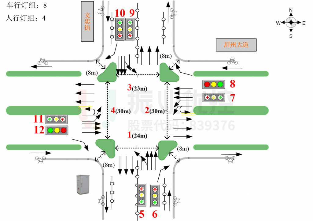 為緩解交叉口擁堵,眉山公安交警組織振業(yè)優(yōu)控眉山優(yōu)控中心及四川路橋 ,根據(jù)路面占道施工情況,一是通過調(diào)整交叉口西進(jìn)口車道配置,提高車道利用率;二是結(jié)合交叉口實際運行情況,通過調(diào)整放行方式,減少直行機動車與左轉(zhuǎn)非機動車之間的相互影響,提升通行秩序。