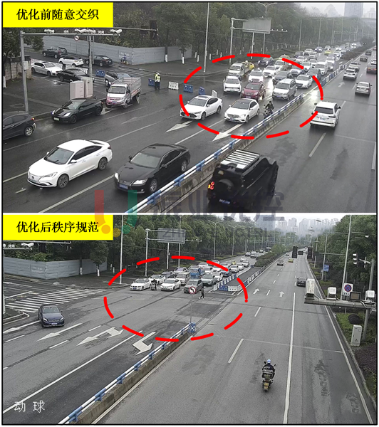 兩江新區(qū)交巡警支隊組織配時中心展開專項研究,針對金州大道-肖家溝南路路口交通組織不合理,兩路口間距過近缺乏聯(lián)動控制等問題,本次調(diào)整通過交通組織和配時一體化優(yōu)化的方式,采取一機(jī)雙崗聯(lián)動控制、調(diào)整車道和路口流向等手段,提高路段整體通行能力。