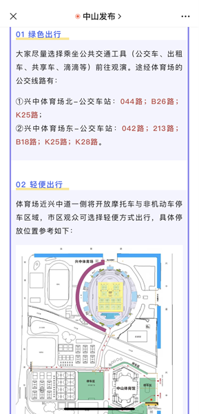 考慮到場館的交通特性,中山交警支隊對興中道、博愛路、銀通街、體育路等場館周邊道路進(jìn)行停車管制,禁停一切車輛,且活動前兩日直至活動結(jié)束,場館內(nèi)部區(qū)域的停車位除工作車輛外,禁止社會機(jī)動車輛進(jìn)入停放。