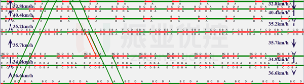 調整相位相序是綠波協(xié)調中比較常見的措施,特別是在道路條件較好、干擾較小,適合做綠波協(xié)調設計的主干道。通過減少支路綠燈空放,主流向相位搭接等方式調配綠信比和相位差,使得車輛能夠一路不停車通過各個路口,減少通行延誤。