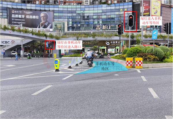 - 增設(shè)非機(jī)動車燈、專用通道及待行區(qū)