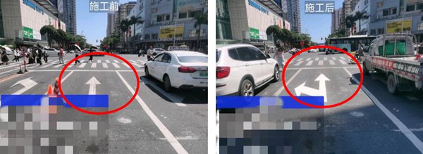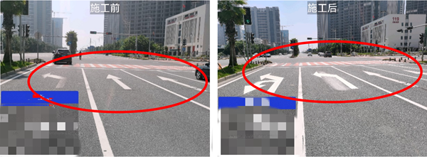 針對(duì)7個(gè)路口不同進(jìn)口存在的擁堵問(wèn)題,結(jié)合交通流量特征變化情況,對(duì)車(chē)道功能劃分進(jìn)行調(diào)整,并同步更新對(duì)應(yīng)的標(biāo)志標(biāo)線(xiàn)、優(yōu)化放行方式,提高路口整體通行能力,縮短路段行車(chē)延誤。