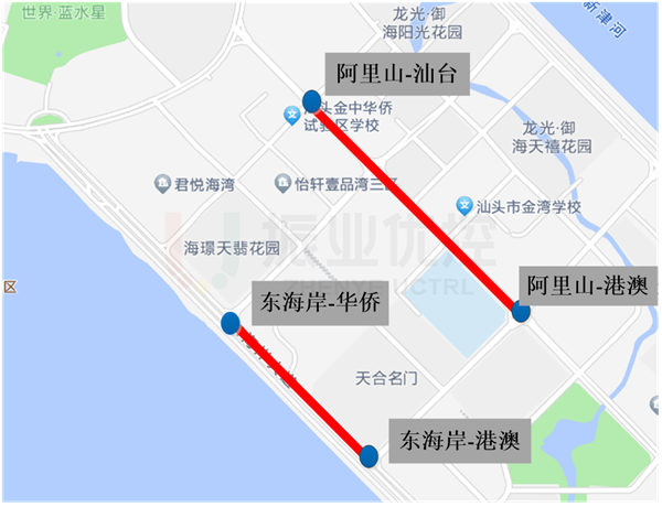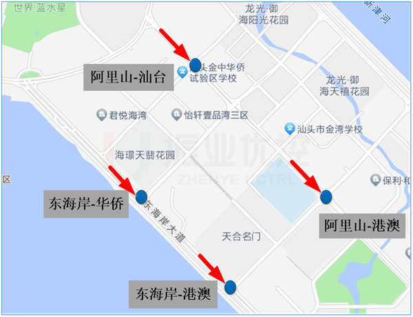 東海岸大道、阿里山路位于海岸新城區(qū),均為南北走向主干道,路段周邊分別有住宅小區(qū)與學(xué)校,是連接汕頭新老城區(qū)的重要路線(xiàn)。