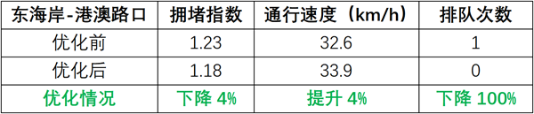 調(diào)整后,北進(jìn)口左轉(zhuǎn)通行能力提升80%,直行提升46%;路口整體通行效率提升39%。