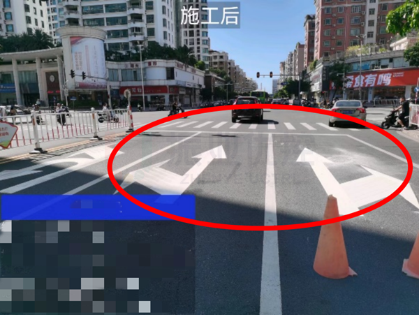 西進(jìn)口機(jī)動(dòng)車(chē)道設(shè)置由“1左+4直”調(diào)整為“1左轉(zhuǎn)掉頭混合+1左+3直”;放行方式適用,無(wú)調(diào)整。