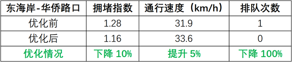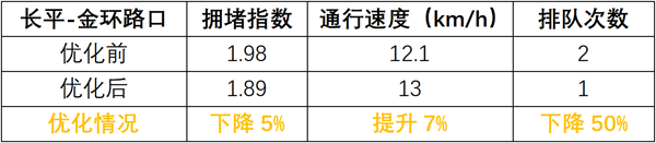 調(diào)整后,北進(jìn)口左轉(zhuǎn)通行能力提升66%,直行下降9%;路口整體通行效率提升28.5%。