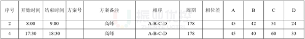 高峰期取消南進(jìn)口直左單放相位,增加北進(jìn)口直左單放相位;細(xì)化配時(shí),增加北單放時(shí)間,提高節(jié)點(diǎn)路口往南疏散效率,降低南往北流入節(jié)點(diǎn)路口流量。