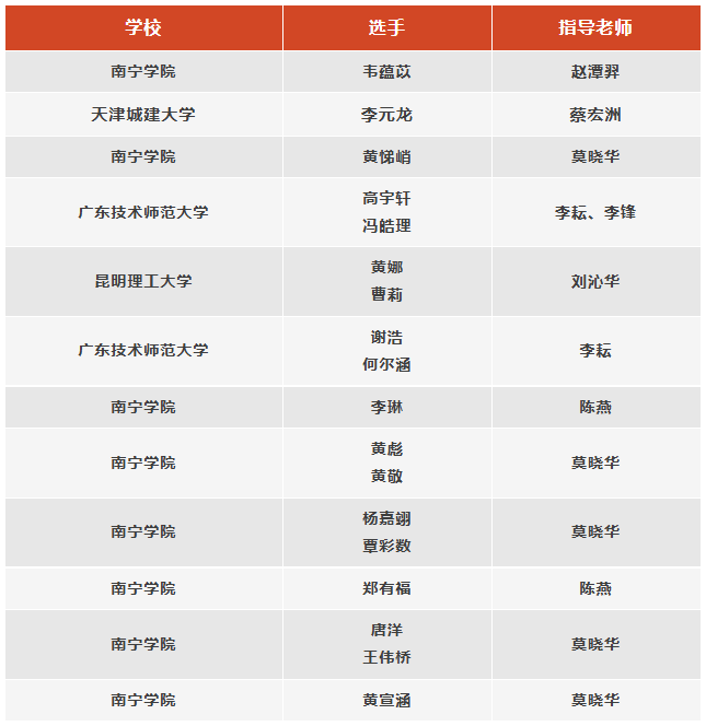 參賽隊伍經(jīng)過激烈角逐,最終晉級全國總決賽的有12支隊伍,他們將于5月下旬在廣東中山“會師”,進(jìn)行本屆大賽的“終極決戰(zhàn)”。