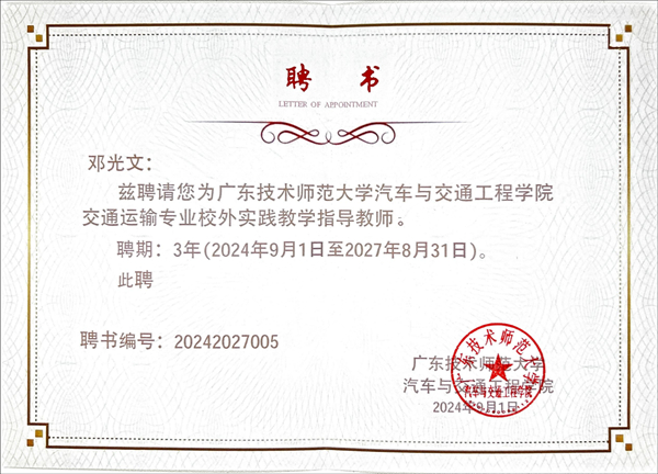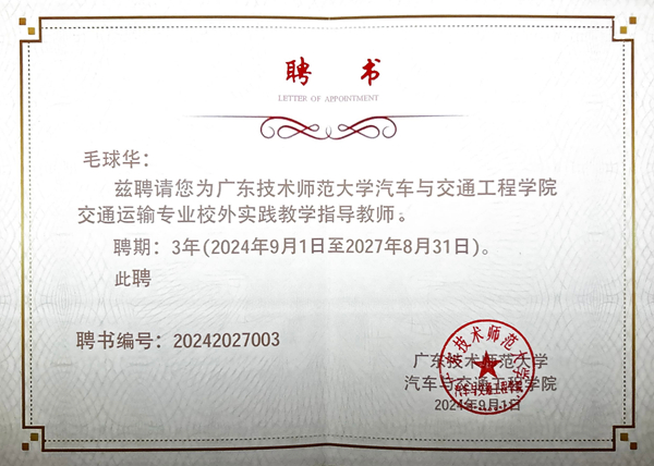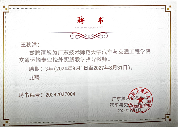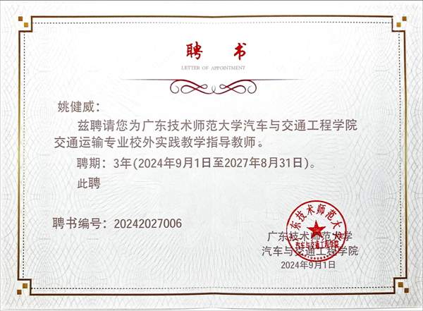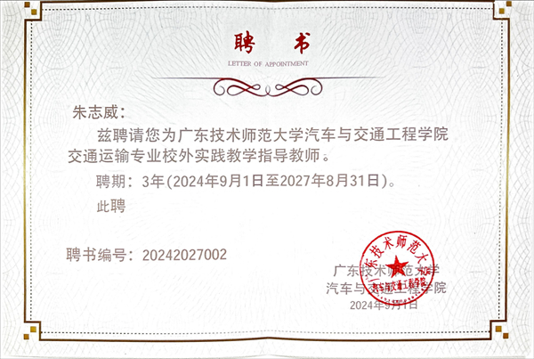 近期,振業(yè)優(yōu)控椒醬團(tuán)朱志威、鄧光文、姚健威、王秋洪、毛球華五位實(shí)戰(zhàn)專家正式受聘為廣東技術(shù)師范大學(xué)汽車與交通工程學(xué)院交通運(yùn)輸專業(yè)校外實(shí)踐教學(xué)指導(dǎo)教師。