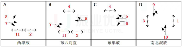 針對路口存在問題,從兩個(gè)方面進(jìn)行優(yōu)化。一方面,相序優(yōu)化,通過調(diào)整路口放行方式,減少南北混放帶來的行駛沖突,消除安全隱患。另一方面,外截內(nèi)疏,均衡中山-嵩山路口東側(cè)路口的車流,控制早晚高峰進(jìn)入中山-嵩山路口東進(jìn)口的車流量。