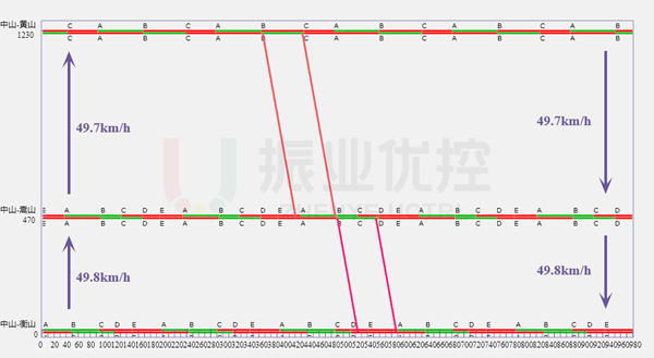 針對中陽泰星路口西進(jìn)口、南進(jìn)口擁堵現(xiàn)象,分別對中山東路、阿里山路等路段進(jìn)行紅波截流控制,緩解兩個(gè)進(jìn)口的交通壓力;北往南方向進(jìn)行綠波協(xié)調(diào),加快上下班車流的消散效率;并根據(jù)路口流量特征精細(xì)化管理配時(shí)方案。