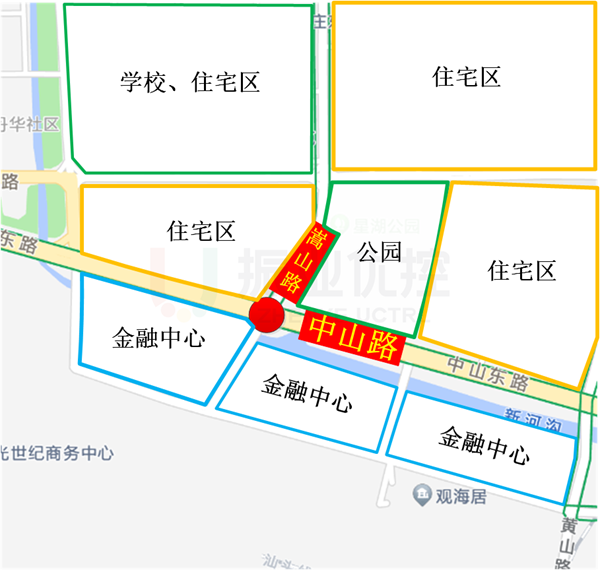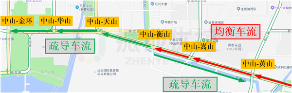 中山-嵩山路口位于汕頭市龍湖區(qū)中山路與嵩山路交匯處,中山路全長8公里,是進(jìn)出汕頭城區(qū)的必經(jīng)之路;嵩山路往北聚集各大住宅區(qū)與學(xué)校,往南聚集商務(wù)中心、金融中心,路口各進(jìn)口全天車流較大。
